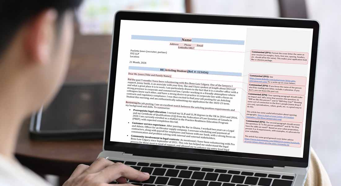 A cover letter is a great way to stand out to potential employers and highlight your specific skills and personality through a well-written document. Our cover letter resources will offer you guidance on how to tailor your cover letter to specific articling job positions.